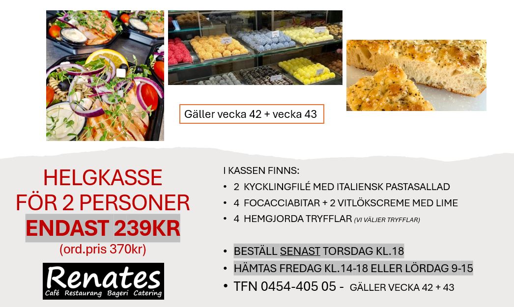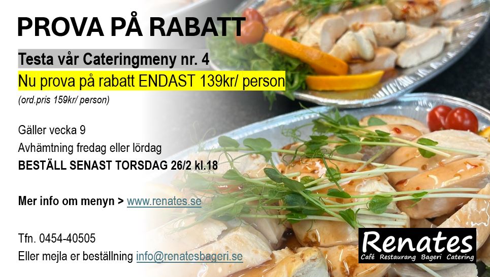 Beställ cateringmat & tårtor på tfn 0454-405 05