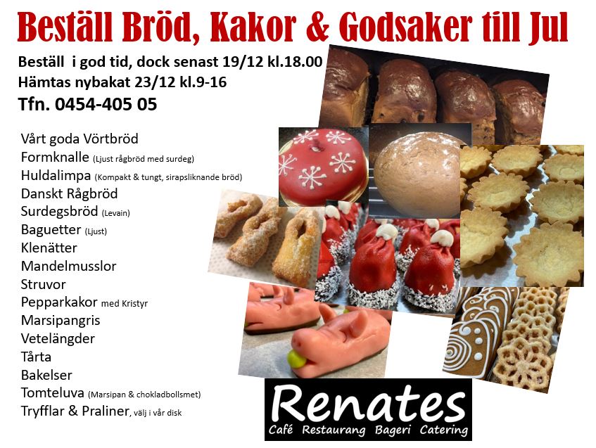 Eller skicka er förfrågan via mejl info@renatesbageri.se